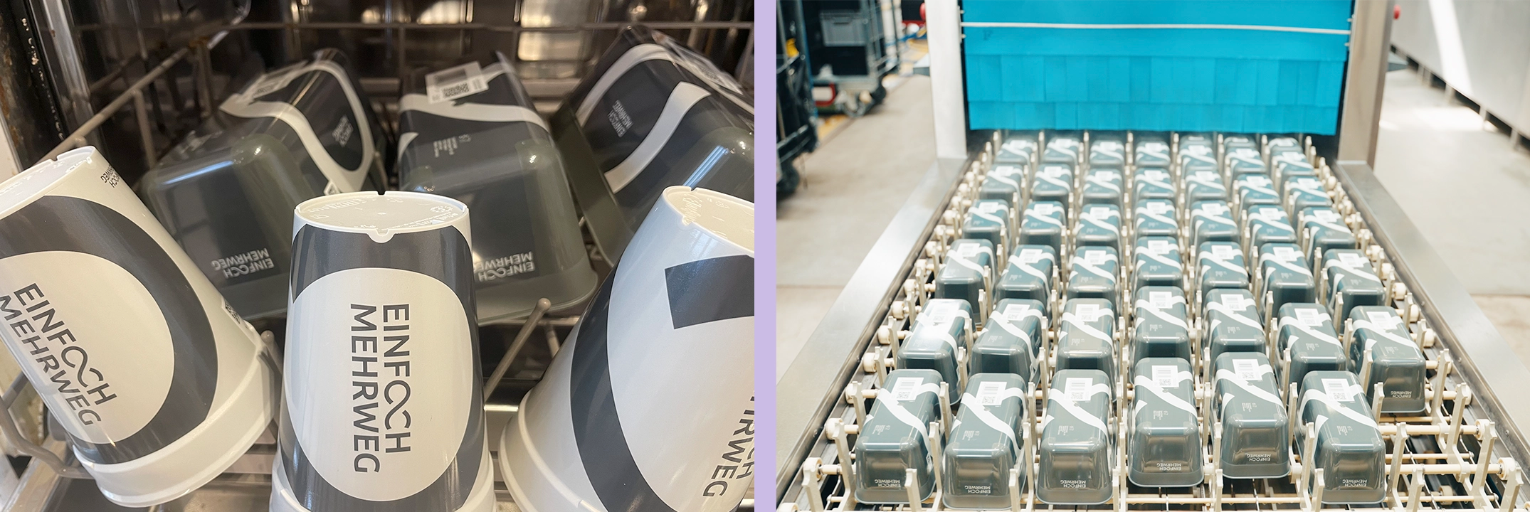 Partners of the Einfach Mehrweg ecosystem can clean on-site or use a centralized return process. With on-site cleaning, Einfach Mehrweg TO-GO quickly becomes cheaper than single-use. Users always have the option to return packaging at deposit return machines in participating food retailers. The blended calculation of on-site cleaning by system partners and centralized return options results in a viable and practical model.
